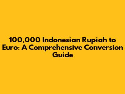 Converting 100,000 IDR to EUR involves understanding the current exchange rate, the factors that influence it, and the various options available for conversion. By staying informed and following our tips, you can ensure you get the best possible value when exchanging your Indonesian Rupiah for Euros. Happy converting!
