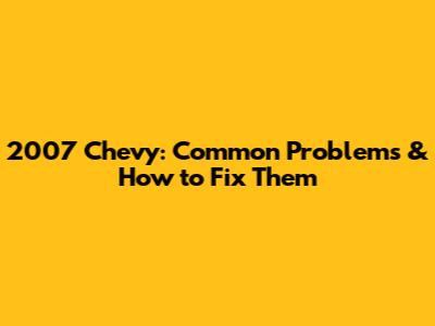 2007 Chevy: Common Problems & How To Fix Them