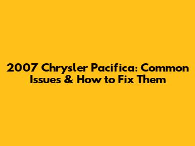 2007 Chrysler Pacifica: Common Issues & How To Fix Them