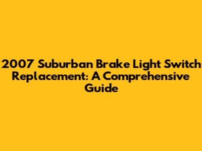 Hey guys! If you're experiencing issues with your 2007 Suburban's brake lights, chances are the brake light switch might be the culprit. Don't worry; replacing it is a pretty straightforward job that you can totally handle yourself with a bit of guidance. Let's dive into everything you need to know about diagnosing, replacing, and ensuring your new brake light switch works perfectly.