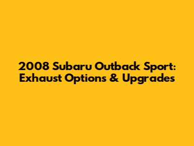 2008 Subaru Outback Sport: Exhaust Options & Upgrades