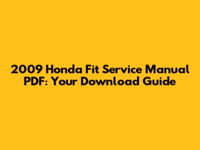 2009 Honda Fit Service Manual PDF: Your Download Guide