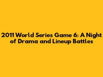 Hey baseball fans! Do you remember the electrifying Game 6 of the 2011 World Series? It was a rollercoaster of emotions, a game that had everyone on the edge of their seats! The St. Louis Cardinals were facing elimination against the Texas Rangers, and the stakes couldn't have been higher. Today, we're diving deep into the 2011 World Series Game 6 lineup, analyzing the players, the strategy, and the unforgettable moments that made this game a true classic. Let's get into the nitty-gritty of who was on the field and how their performances shaped the outcome.