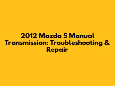 2012 Mazda 5 Manual Transmission: Troubleshooting & Repair