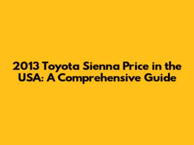 2013 Toyota Sienna Price In The USA: A Comprehensive Guide