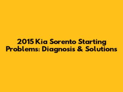 2015 Kia Sorento Starting Issues: Diagnosis & Solutions