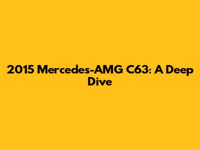 2015 Mercedes-AMG C63: A Deep Dive