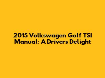 So, is the 2015 Volkswagen Golf TSI manual the right car for you? If you value driving engagement, practicality, and a touch of German engineering, the answer is likely yes. It's a car that's equally at home on a twisty back road as it is on a daily commute. It offers a fun and rewarding driving experience without sacrificing comfort or fuel economy. The manual transmission adds an extra layer of involvement that's sure to appeal to driving enthusiasts. You'll feel more connected to the car and more in control of its performance. But it's not just about the driving experience. The Golf TSI is also a practical and versatile car. It offers plenty of space for passengers and cargo, making it a great choice for families or anyone who needs a car that can do it all. It's also relatively affordable, both to buy and to own. The Golf TSI is known for its reliability, and its fuel economy is respectable. Of course, it's important to consider your own needs and preferences. If you're not comfortable driving a manual transmission, the automatic version might be a better choice. And if you need a lot of space, a larger SUV might be more suitable. But if you're looking for a fun, practical, and engaging car that won't break the bank, the 2015 Golf TSI manual is definitely worth a look. It's a car that's sure to put a smile on your face every time you get behind the wheel. Take it for a test drive and see for yourself. You might just fall in love with its sporty handling, comfortable interior, and overall sense of quality. It's a car that's built to last and designed to impress.