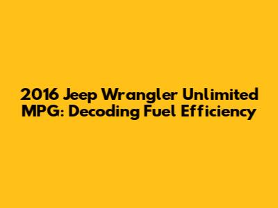 Hey guys! Let's dive into the 2016 Jeep Wrangler Unlimited MPG, shall we? If you're considering a 2016 Jeep Wrangler Unlimited, one of the first things that probably popped into your head, right after picturing yourself cruising down a dusty trail, was likely, "How many miles per gallon (MPG) does this beast get?" Understanding the fuel economy of your potential new ride is super important. It helps you budget, plan road trips, and generally get a feel for the day-to-day cost of owning the vehicle. So, grab your coffee, and let's unravel the MPG mystery of the 2016 Jeep Wrangler Unlimited. We'll cover everything from the EPA ratings to real-world driving experiences, helping you make a well-informed decision.