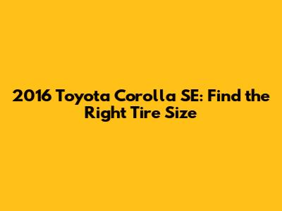 2016 Toyota Corolla SE: Find The Right Tire Size