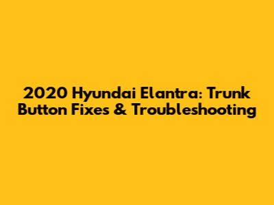 2020 Hyundai Elantra: Trunk Button Fixes & Troubleshooting