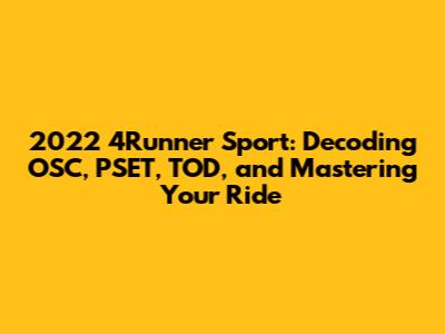 Alright, gearheads, let's dive deep into the heart of the 2022 Toyota 4Runner Sport. This isn't just any SUV; it's a legend, a beast, and a blank canvas for adventure. But before you hit the trails or cruise the city streets, let's break down some of the key acronyms and systems that make this vehicle tick. Specifically, we're talking about OSC, PSET, and TOD, which play crucial roles in how your 4Runner performs. Understanding these terms will not only make you a more informed owner but also help you troubleshoot any potential issues and maximize your off-road experience. This guide will walk you through each component, explaining what they are, how they work, and what you need to know to keep your 4Runner running smoothly. So, buckle up, because we're about to embark on a journey through the mechanics of your off-road warrior!