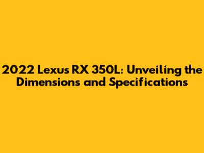 • What are the key dimensions of the 2022 Lexus RX 350L? The 2022 Lexus RX 350L typically measures around 196.9 inches in length, 74.6 inches in width, and 67.3 inches in height, with a wheelbase of about 110.6 inches.
