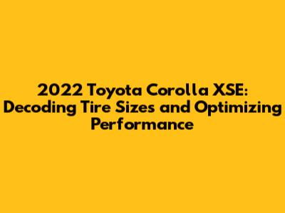 Hey car enthusiasts! So, you're cruising around in a shiny new 2022 Toyota Corolla XSE, awesome choice! It's a fantastic car, known for its reliability, style, and surprisingly zippy performance. But, like any car owner, you'll eventually need to think about tires. And that's where things can get a little confusing. What's the right tire size for your 2022 Corolla XSE? What do all those numbers and letters mean? And why does it even matter? Well, grab a seat, and let's break it all down. We're going to dive deep into the world of 2022 Toyota Corolla XSE tire sizes, exploring everything from the stock tire specs to understanding those cryptic tire codes. We'll also touch on why choosing the right tires is super important for your car's performance, safety, and even your wallet. Ready to become a tire-savvy Corolla XSE owner? Let's get started!