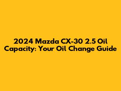 Hey guys! So, you're here because you want to know about the 2024 Mazda CX-30 2.5 oil capacity, right? Awesome! Getting the right amount of oil into your CX-30 is super important for keeping that engine purring like a kitten. Trust me, nobody wants a grumpy engine! In this guide, we'll dive deep into the oil capacity for your specific Mazda CX-30 2.5 model, and we'll cover some related aspects such as the oil type, filter, and other essential tips for a smooth oil change. Let's get started!