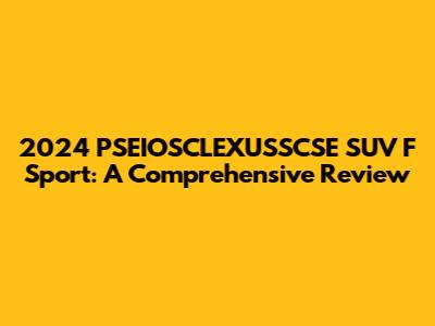 2024 PSEIOSCLEXUSSCSE SUV F Sport: A Comprehensive Review