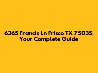 Hey guys! Are you looking for a new home or just curious about a property at 6365 Francis Ln in Frisco, Texas? Well, you’ve landed in the right spot! This guide provides an in-depth look at this address, offering insights into the property itself, the surrounding neighborhood, and everything that makes this location a great place to live. Whether you're a potential buyer, a neighbor, or just doing some research, stick around – we've got you covered.