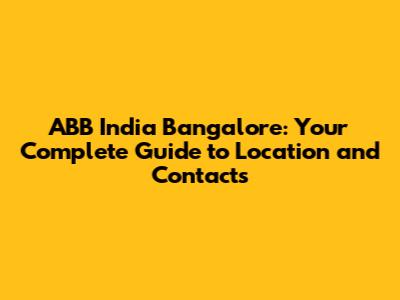 ABB India Bangalore: Location, Contact & More