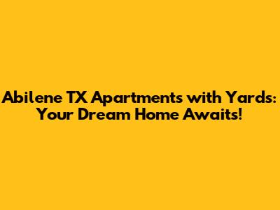 Abilene TX Apartments With Yards: Your Dream Home Awaits!