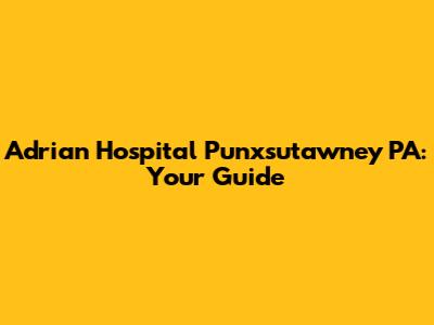 Hey guys! Ever find yourself needing info about Adrian Hospital in Punxsutawney, PA? You've come to the right place! This guide will walk you through everything you need to know. Let's dive in!