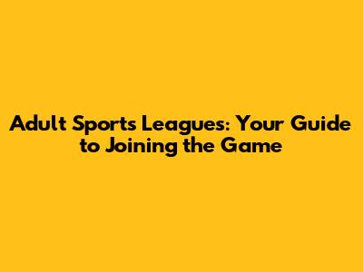 Adult Sports Leagues: Your Guide To Joining The Game
