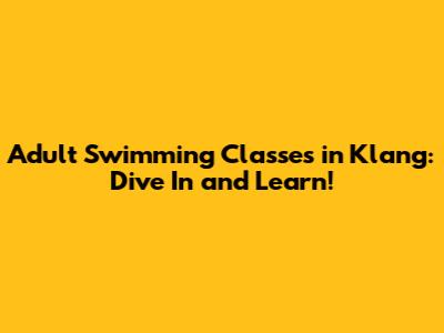 Adult Swimming Classes In Klang: Dive In And Learn!