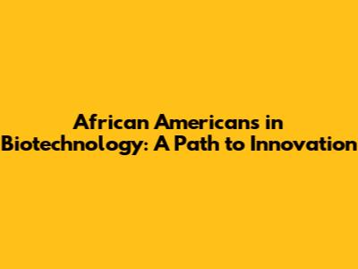 African Americans In Biotechnology: A Path To Innovation