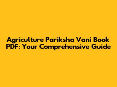 Agriculture Pariksha Vani Book PDF: Download Now!