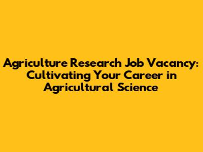 Agriculture Research Jobs: Find Your Vacancy Today!