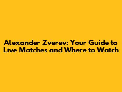 Alexander Zverev: Live Matches, Schedule & How To Watch