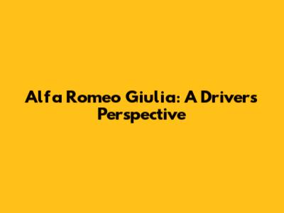 Alfa Romeo Giulia: A Driver's Perspective
