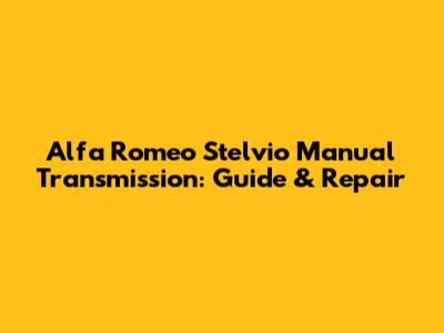 Alfa Romeo Stelvio Manual Transmission: Guide & Repair