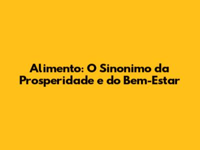 Alimento: O Sinonimo Da Prosperidade E Do Bem-Estar