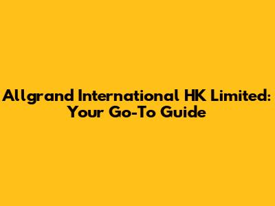 Allgrand International HK Limited: Your Go-To Guide