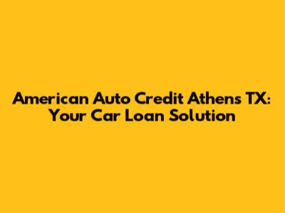 Finding the right auto loan can feel like navigating a maze, especially if you have less-than-perfect credit. But guess what? If you're in Athens, Texas, American Auto Credit might just be the solution you've been searching for. Let's dive into what makes them a go-to option for many folks looking to finance a vehicle.