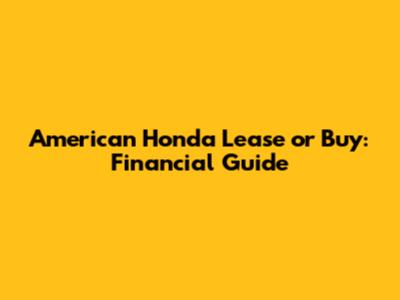 American Honda Lease Or Buy: Financial Guide