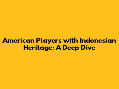 American Players With Indonesian Heritage: A Deep Dive