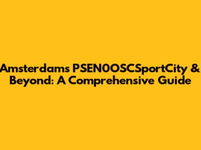 Amsterdam's PSEN0OSCSportCity & Beyond: A Comprehensive Guide