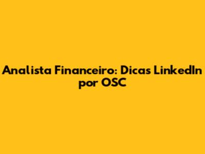 Analista Financeiro: Dicas LinkedIn Por OSC