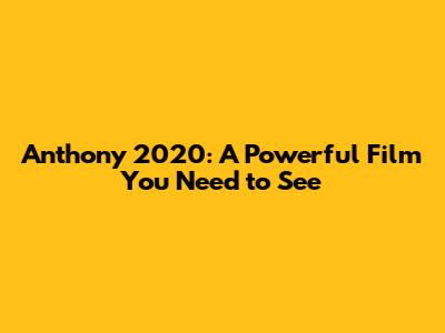 Anthony 2020: A Powerful Film You Need To See