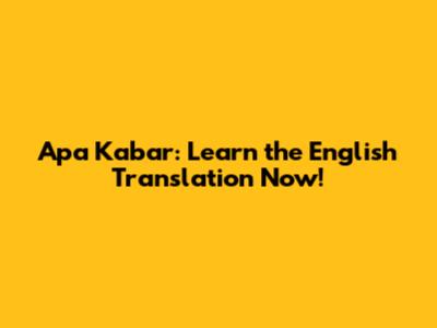 Apa Kabar: Learn The English Translation Now!