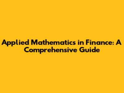 Applied Mathematics In Finance: A Comprehensive Guide