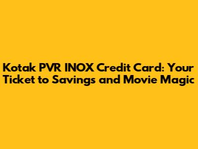 Hey there, movie buffs and savvy spenders! Are you looking for a credit card that rewards your love for films while offering awesome perks? Look no further! The Kotak PVR INOX Credit Card might just be your perfect companion. This card isn't just another piece of plastic; it's your gateway to a world of movie discounts, reward points, and exclusive benefits at PVR and INOX cinemas. In this article, we'll dive deep into everything you need to know about applying for this card, its amazing features, and how you can maximize its advantages. So, grab some popcorn, sit back, and let’s get started!