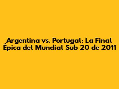 Argentina Vs. Portugal: La Final Épica Del Mundial Sub 20 De 2011