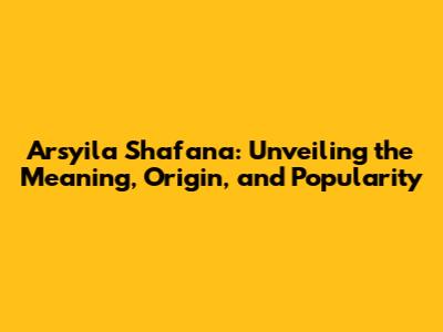 Arsyila Shafana: Meaning, Origin, And Popularity
