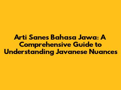 Arti Sanes Bahasa Jawa: Comprehensive Guide