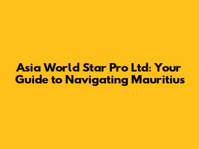 Hey guys! Ever heard of Asia World Star Pro Ltd Mauritius? If you're scratching your head, no worries – we're diving deep into everything you need to know about this company and its operations in the beautiful island nation of Mauritius. We'll cover everything from what they do, their impact, and what makes them tick. So, grab a coffee (or your favorite beverage), and let's get started. We are going to explore the ins and outs of Asia World Star Pro Ltd's presence in Mauritius.