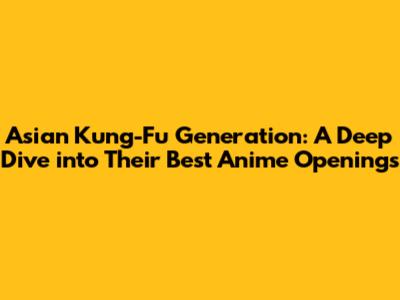 Asian Kung-Fu Generation: Best Anime Openings