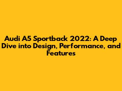 Hey guys! Let's talk about the Audi A5 Sportback 2022 – a car that blends sleek design with impressive performance. This article dives deep into what makes this car a standout, covering everything from its eye-catching design to its tech-packed interior and powerful engine options. If you're considering the A5 Sportback, or just curious about this model, you're in the right place. We'll explore its different trim levels, the driving experience, and even touch on how it stacks up against its competitors. So, buckle up, and let's get started!