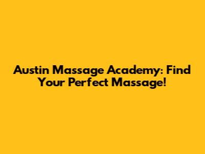 Austin Massage Academy: Find Your Perfect Massage!